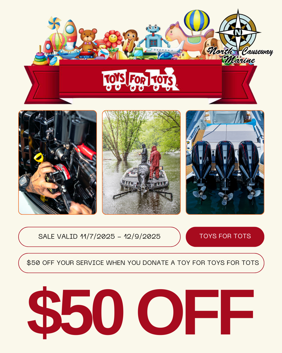 It’s the season of giving, and we’re excited to support Toys for Tots this year here at North Causeway Marine!